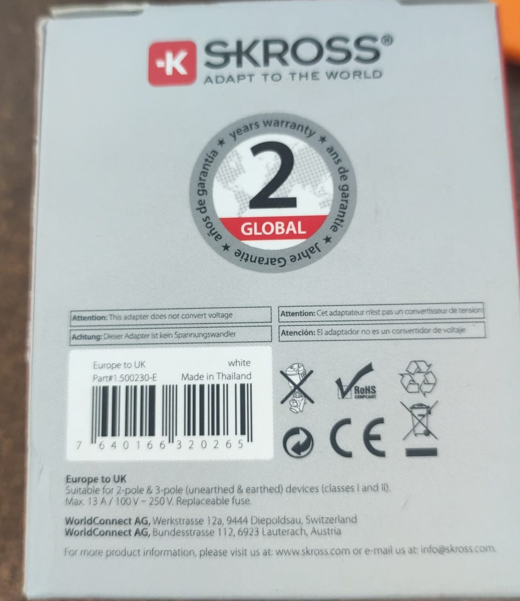Adaptor priza EU - UK 13A Skross 1.500230-E