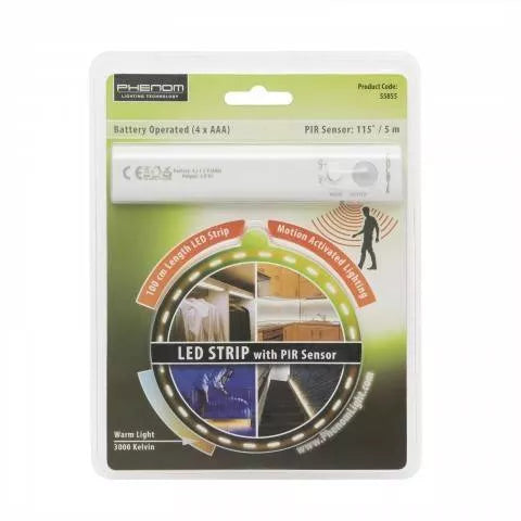 Banda LED cu senzor de miscare cu baterie 100cm alb cald 3000K Phenom Lighting