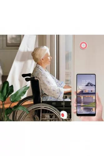 Butonul SOS poate fi fixat sau poate functiona ca o alarma de panica mobila oriunde in casa sau la birou.