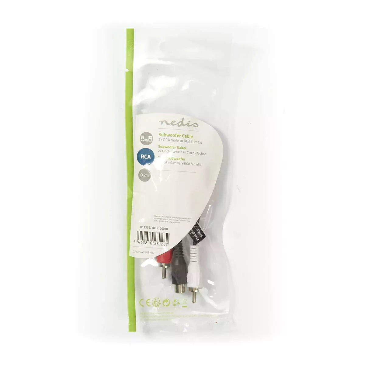 Cablu Subwoofer Nedis 2x RCA tata - RCA mama, 0.2m, negru.