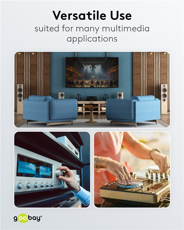 Seria Goobay Plus vine într-un design metalic sub?ire ?i elegant, în gri Sharkskin. Cablul RCA este special adaptat semnalelor analogice de joas? frecven?? ale subwooferelor - pentru un r?spuns bogat ?i puternic al basului ?i o experien?? impresionant? de muzic? ?i film.