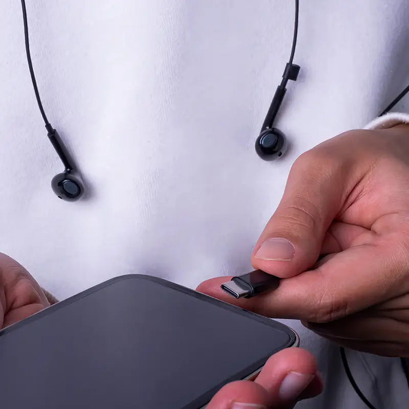 Conectorul USB-C asigura compatibilitate cu majoritatea telefoanelor si dispozitivelor moderne, permitand conectarea directa fara adaptoare suplimentare. Designul ergonomic intraauricular ofera o fixare confortabila si stabila in ureche.