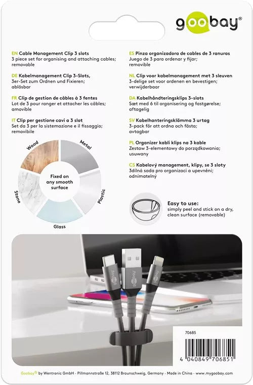 Set de 3 piese pentru organizarea ?i ata?area cablurilor; amovibil