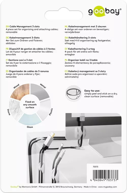 Set de 4 piese pentru organizarea ?i ata?area cablurilor; amovibil