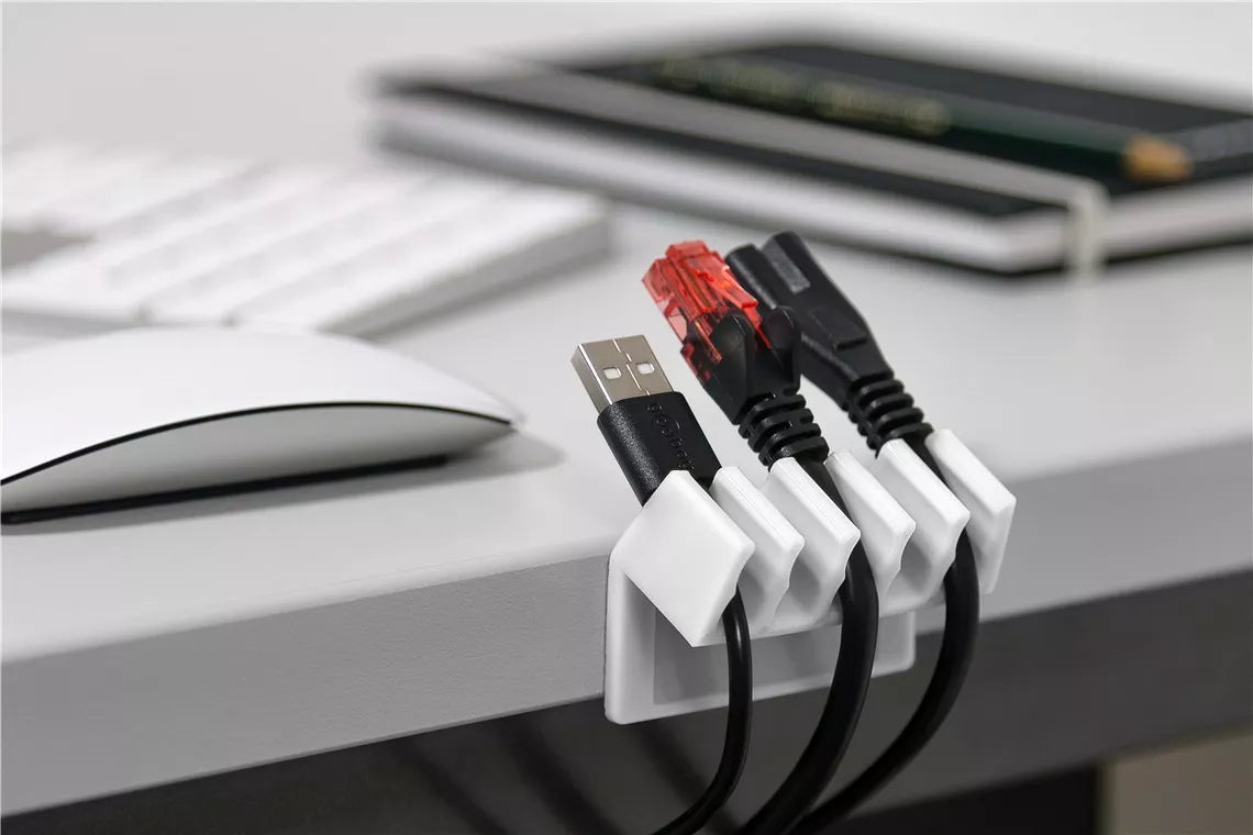 Acest ghidaj flexibil pentru cabluri fixeaz? cablurile din gama mânerului ?i evit? alunecarea cablurilor de înc?rcare sau a altor conexiuni USB în spatele ?i sub birou.