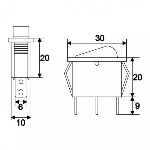 Interupator basculant 3 pini 1 circuit 10A 250V OFF-ON galben