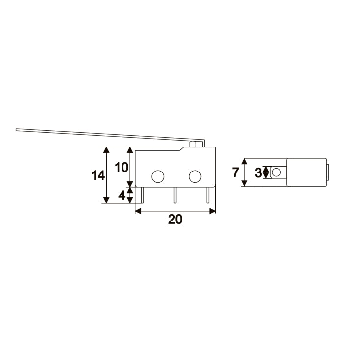 Microinterupator 1 circuit 5 2A 250V ON-ON cu lamela 50mm 20x10x7mm