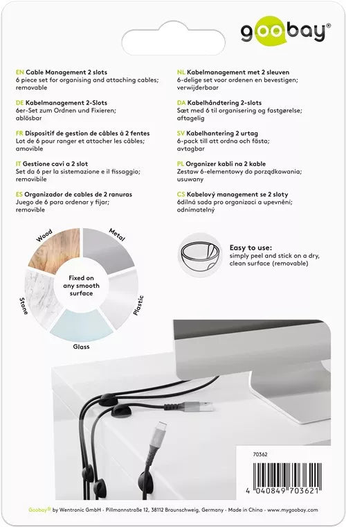 Organizatoare cabluri 6buc cu 2 sloturi negru Goobay.