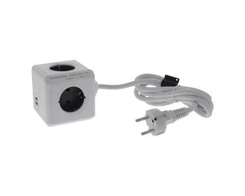 Prelungitor 4 prize CUB +2x USB lungime cablu 1.5m gri Allocacoc