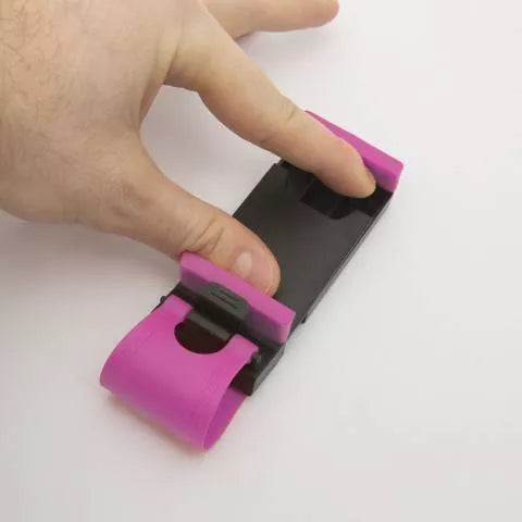 Culoare roz. Dimensiune de cuprindere reglabila, maxim 80 mm. Ideal pentru telefoane de 12 cm